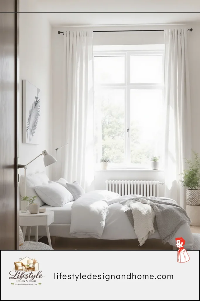 For renters: the curtains and the bedding can do much of the same work. A warm-toned linen bedding set in oatmeal or natural flax, combined with curtains in a warm cream or natural ivory, warm the room’s color story even when the walls are the landlord’s cool off-white. The surfaces you can control — the large fabric surfaces — shift the room’s overall color temperature toward warmth, and warmth reads as more spacious than cool.