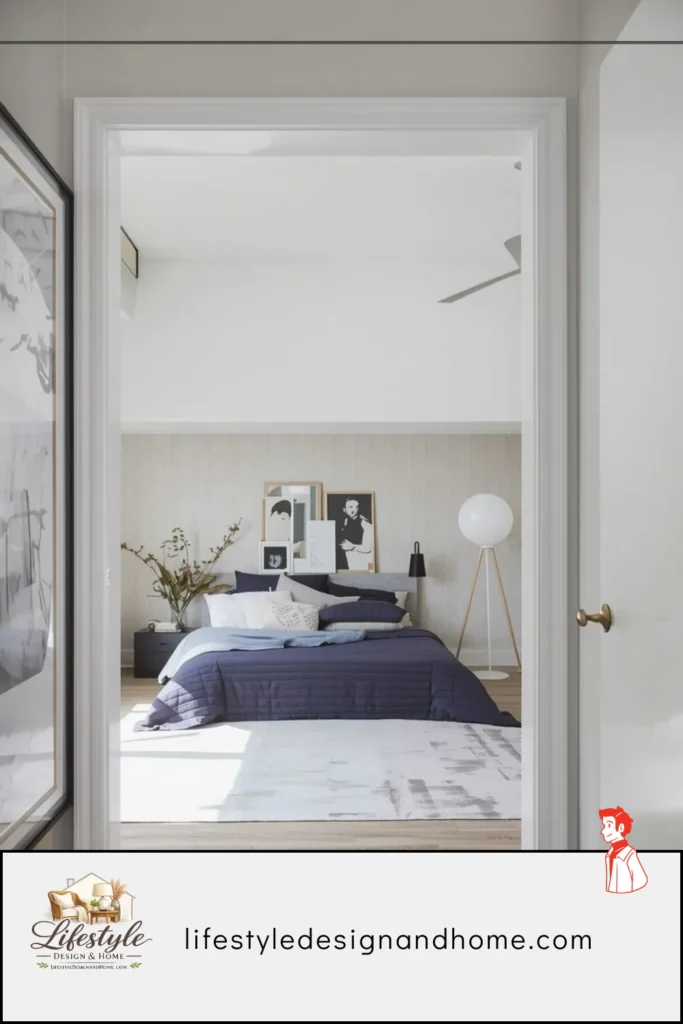 Why this makes rooms feel smaller: Perceived room size is disproportionately influenced by perceived ceiling height. A room that reads as tall reads as spacious. A room that reads as a horizontal band reads as a box. The 8-foot ceiling in my small bedroom felt lower than 8 feet because the room was narrow and everything in it was low, which made the height-to-width ratio read as compressed. Adding vertical emphasis — drawing the eye upward — made the ceiling feel higher than it was and the room feel more proportioned.