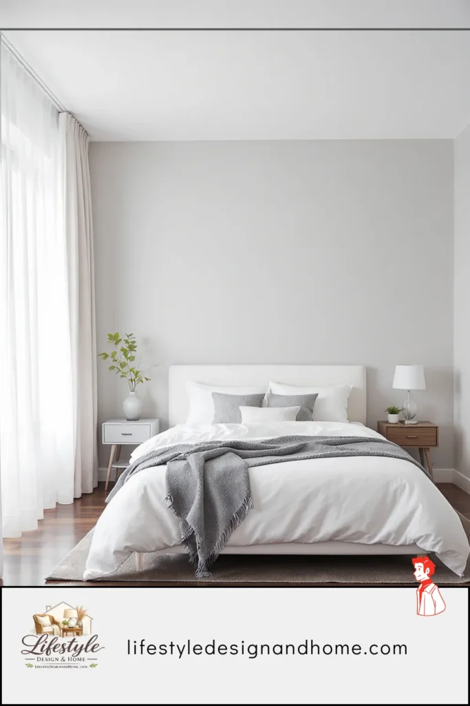 In the 8-by-10 room, I was renting and could not paint. But I have painted small bedrooms in owned spaces and the change is significant enough to be worth describing. The specific change that works: from any cool-toned color or neutral grey to a warm off-white with a specific undertone — a slight pink, a slight yellow, a slight peach. Not enough to read as a color. Enough to be warm rather than cool. The room goes from feeling like it’s made of the same material as the outside of the building to feeling like it’s made of something that was chosen.